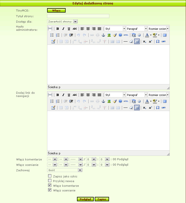Chcia?bym doda? do pisania Newsów guzik w??cz/wy??cz TinyMCE taki jak jest w Dodatkowe strony