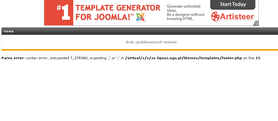 B??d: Parse error: syntax error, unexpected -/footer.php po instalacji